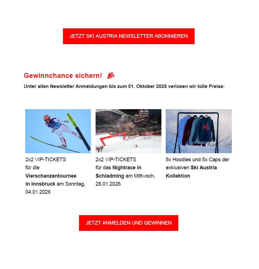 Gewinne Weltcup-Tickets & Hoodies – jetzt Ski Austria Newsletter abonnieren